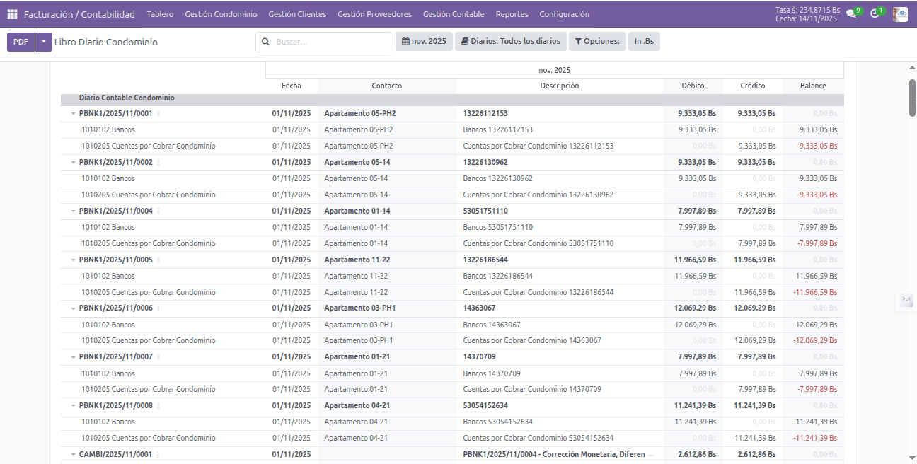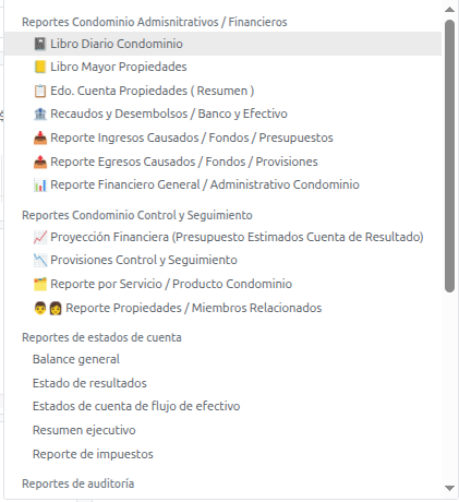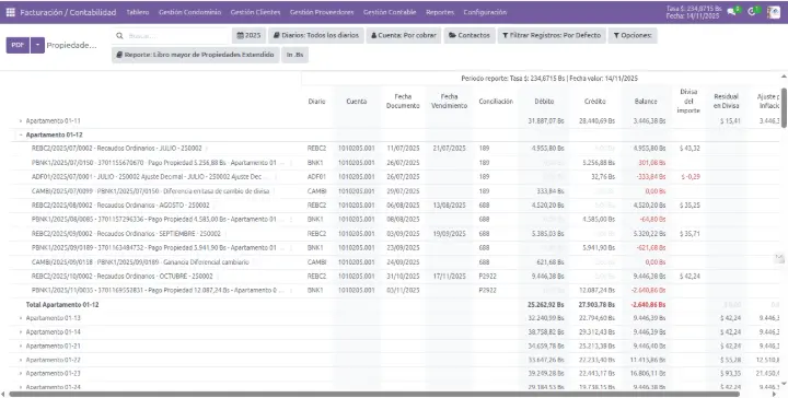 Control de múltiples diarios de contabilidad: diario banco y caja, recibos de condominios, proveedores, entre otros. Software facturación condominios, estado de Situación Financiera de acuerdo a la normativa contable NIC y NIF, balance general, balance de comprobación, estado de resultados, estado de flujos de efectivo, impuestos e inventario. Auditoría finanzas de condominios y conciliación bancaria. Software de condominios, sistema administrativo y contable.
