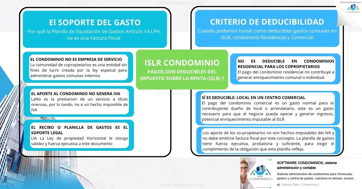 - Las cuotas recaudadas de los propietarios para gastos comunes no son un hecho imponible del IVA ni generan enriquecimiento gravable para el ISLR, ya que no son una prestación de servicio a título oneroso.