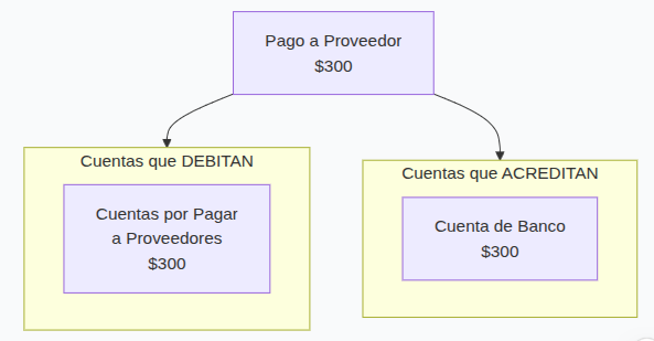 - Pagamos la Factura: Se ordena al banco pagar al proveedor, lo que reduce el saldo bancario y elimina la deuda registrada.