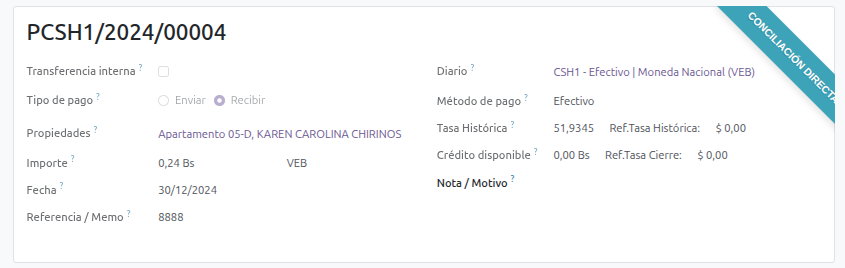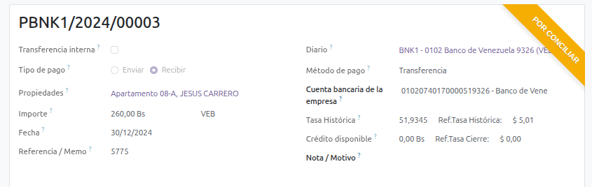 Este tutorial está dirigido exclusivamente a usuarios que operan con la modalidad de Banco Conciliación Directa, donde el pago se contabiliza directamente en la cuenta del banco, sin utilizar cuentas intermedias de pagos pendientes.