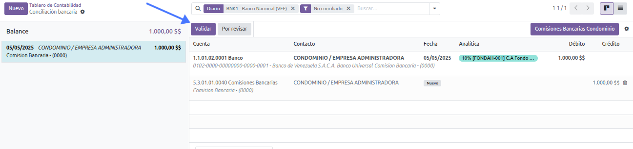 Finalmente, haga clic en el botón "Validar" para confirmar la conciliación.