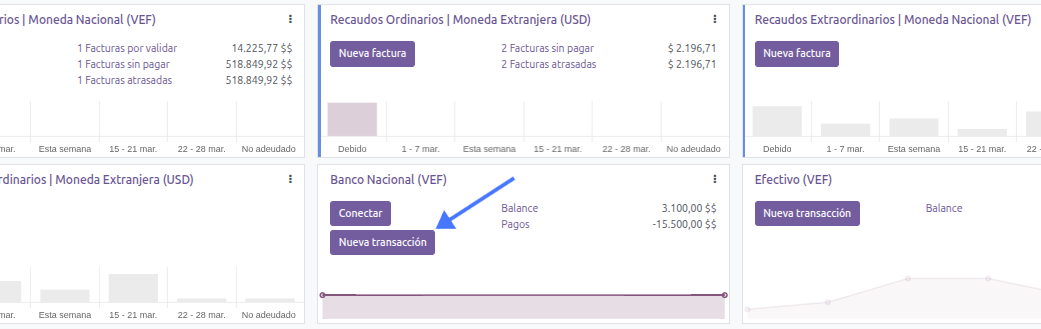 - Crear Transacción: En el diario de Banco, haz clic en "Nueva Transacción".