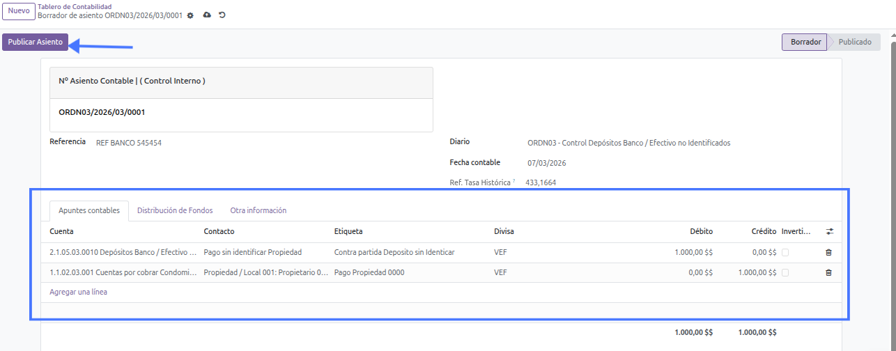 - ¿Por qué Pasivo? Porque el condominio ha recibido un dinero sobre el cual no tiene aún una justificación de cobro (factura matada). Técnicamente, es una obligación de "aclarar o devolver" hasta que se identifique al propietario.